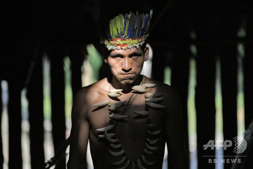 【9月19日 AFP】コロンビア東南部レティシア(Leticia)で開催されるアマゾン首脳会議(Presidential Summit for the Amazon)を控え、先祖伝来の共同家屋「マロカ(maloca)」の中でポーズを取る同国先住民ウイトト(Huitoto)の男性。