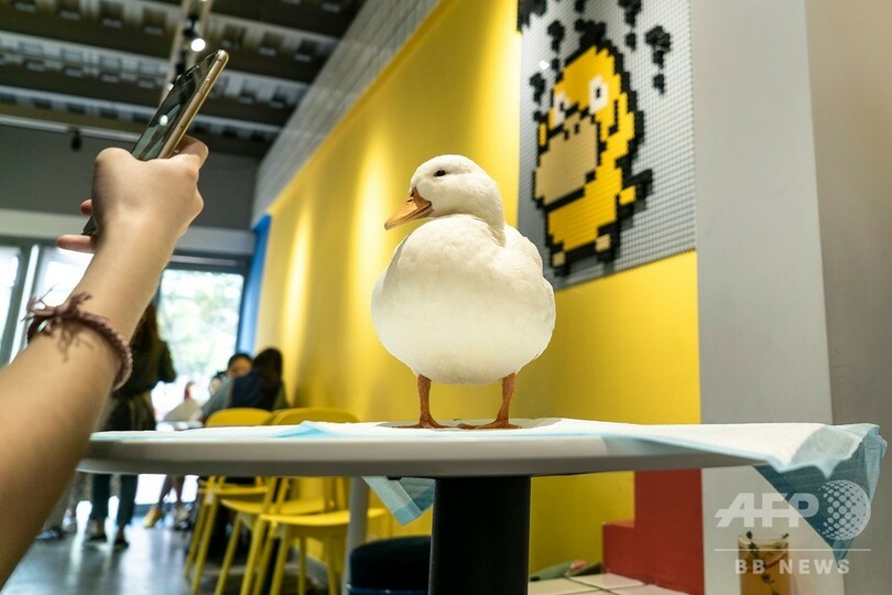 【9月19日 AFP】中国のとあるカフェでは、たくさんの客が飲み物をよそに、フワフワの白いアヒル4羽の周りに集まって、写真を撮ろうとスマートフォンを構えている。中国では動物カフェが人気で、数を増やしている。