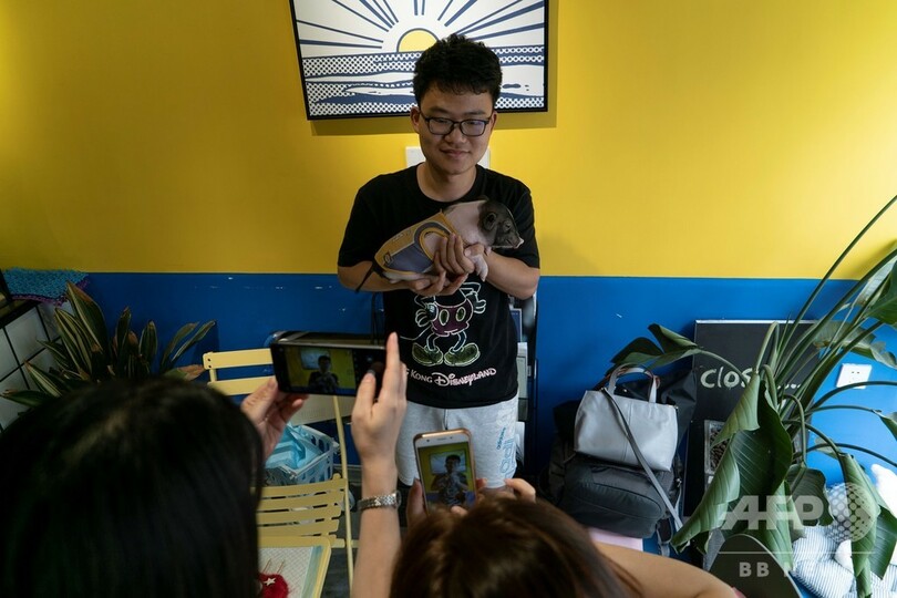 【9月19日 AFP】中国のとあるカフェでは、たくさんの客が飲み物をよそに、フワフワの白いアヒル4羽の周りに集まって、写真を撮ろうとスマートフォンを構えている。中国では動物カフェが人気で、数を増やしている。