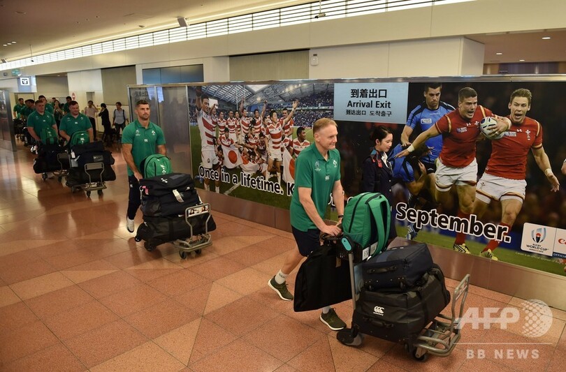 【9月13日 AFP】ラグビーW杯日本大会(Rugby World Cup 2019)に出場するアイルランド代表が12日、羽田空港(Haneda Airport)に到着した。世界ランキング1位のアイルランドは、プールAで日本、スコットランド、ロシア、サモアと対戦する。(c)AFP