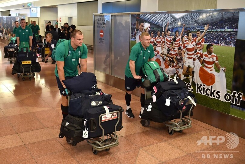 【9月13日 AFP】ラグビーW杯日本大会(Rugby World Cup 2019)に出場するアイルランド代表が12日、羽田空港(Haneda Airport)に到着した。世界ランキング1位のアイルランドは、プールAで日本、スコットランド、ロシア、サモアと対戦する。(c)AFP