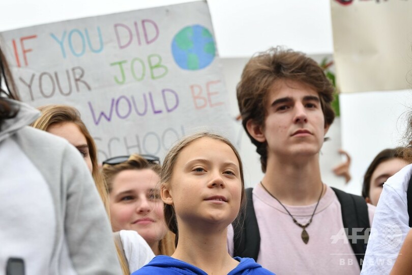 多数のデモ参加者がシュプレヒコールを上げたり、歌ったりする中、トゥンベリさんは後方に待機してメディアからの注目や質問を避けていたが、スピーチでは、世界一の経済大国である米国と、気候変動に懐疑的なことで知られるドナルド・トランプ(Donald Trump)米大統領に対し、行動を起こすよう求めた。