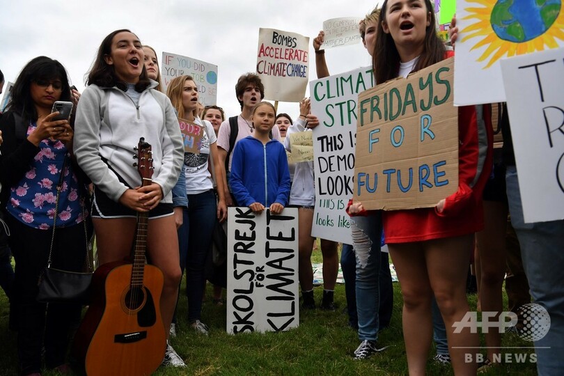 多数のデモ参加者がシュプレヒコールを上げたり、歌ったりする中、トゥンベリさんは後方に待機してメディアからの注目や質問を避けていたが、スピーチでは、世界一の経済大国である米国と、気候変動に懐疑的なことで知られるドナルド・トランプ(Donald Trump)米大統領に対し、行動を起こすよう求めた。