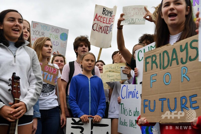 多数のデモ参加者がシュプレヒコールを上げたり、歌ったりする中、トゥンベリさんは後方に待機してメディアからの注目や質問を避けていたが、スピーチでは、世界一の経済大国である米国と、気候変動に懐疑的なことで知られるドナルド・トランプ(Donald Trump)米大統領に対し、行動を起こすよう求めた。