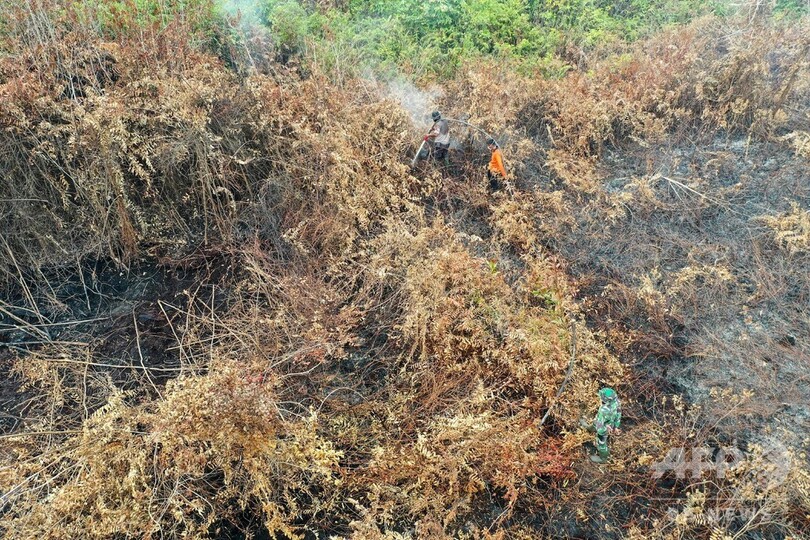 インドネシアでは例年、林野火災が問題となるが、今年は特に乾燥しているため事態が悪化。有害なスモッグは隣国のマレーシアとシンガポールにも広がり、外交問題を引き起こしている。(c)AFP/Dessy SAGITA