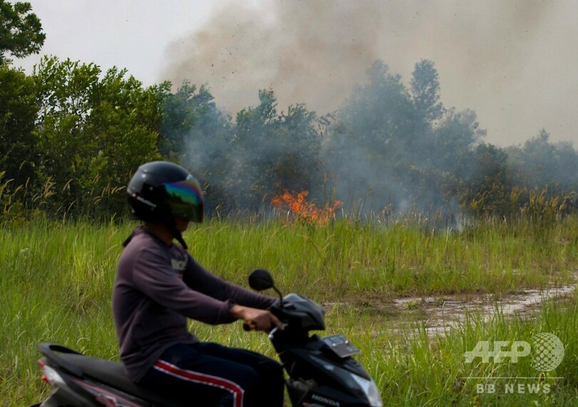 インドネシアでは例年、林野火災が問題となるが、今年は特に乾燥しているため事態が悪化。有害なスモッグは隣国のマレーシアとシンガポールにも広がり、外交問題を引き起こしている。(c)AFP/Dessy SAGITA