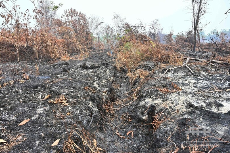 インドネシアでは例年、林野火災が問題となるが、今年は特に乾燥しているため事態が悪化。有害なスモッグは隣国のマレーシアとシンガポールにも広がり、外交問題を引き起こしている。(c)AFP/Dessy SAGITA