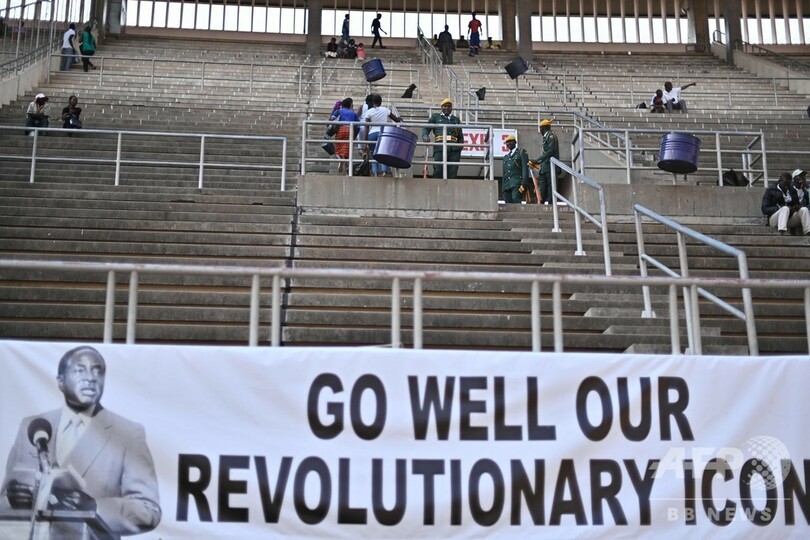 ムガベ氏のひつぎは緑、黒、黄、赤を配したジンバブエ国旗に包まれ、軍楽隊が演奏する中で競技場に運び込まれた。参列者の間からは祈りの声や太鼓の音が湧き起こったものの、埋まっていた座席は全体(6万席)の半分に満たなかった。