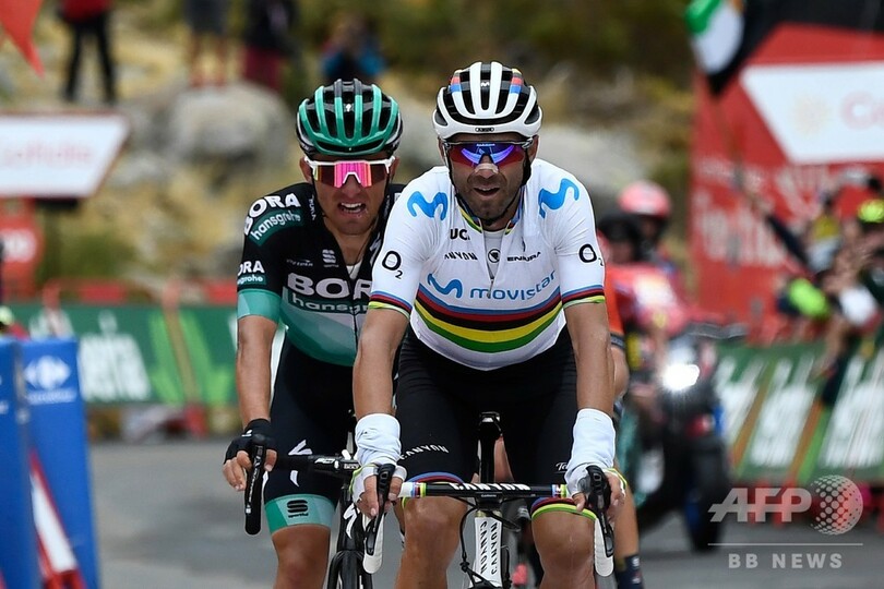 総合勢では、モビスター・チーム(Movistar Team)のアレハンドロ・バルベルデ(Alejandro Valverde、スペイン)が2位の座を手中に収めたが、チームメートのナイロ・キンタナ(Nairo Quintana、コロンビア)は3位から4位に落ちた。(c)AFP