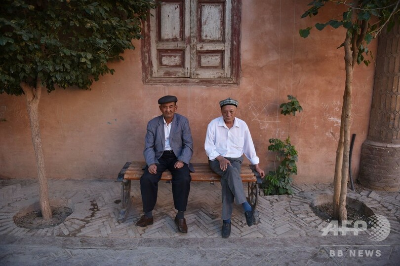 中国西部・新疆ウイグル自治区カシュガルの旧市街で休息しているウイグル人男性たち(2019年6月3日撮影)。(c)GREG BAKER / AFP