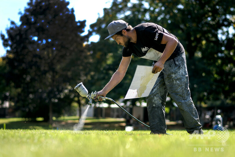 【9月18日 AFP】スイス西部ジュネーブのグランジュ公園(Parc de la Grange)に、フランス人アーティストのサイープ(Saype)氏が手掛けた巨大アート「ビヨンド・ウオールズ(Beyond Walls、壁を越えての意)」が登場した。地中海で移民・難民の救助などに取り組むフランスのNGO「SOSメディテラネ(SOS Mediterranee)」の活動を支援するために制作された。(c)AFP
