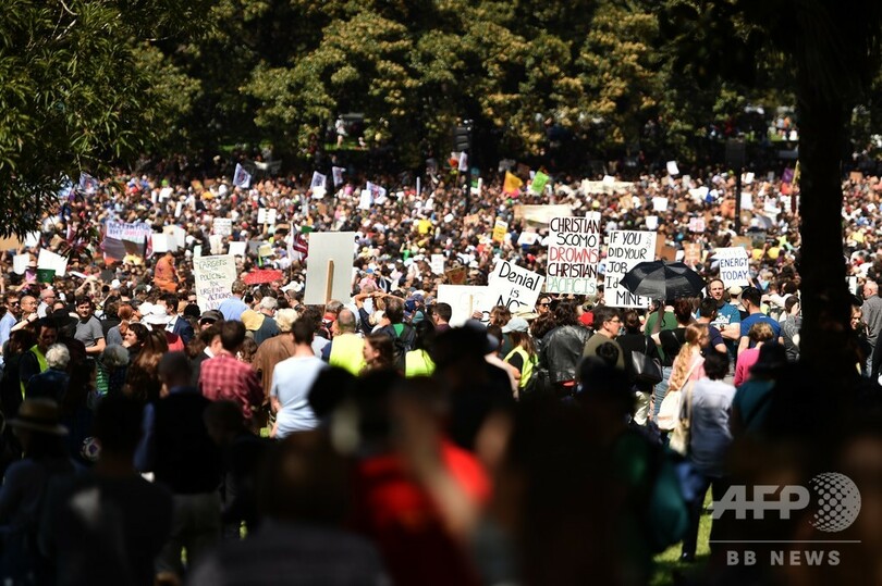 オーストラリアでの集会の主催者発表によると、30万人以上の子どもや親、支持者らがデモに参加したという。「フライデーズ・フォー・フューチャー(Fridays for Future)」と銘打たれ、世界各地で5000件企画されたイベントの中でも初期に行われた今年3月の抗議運動に比べると、2倍以上の人出となった。