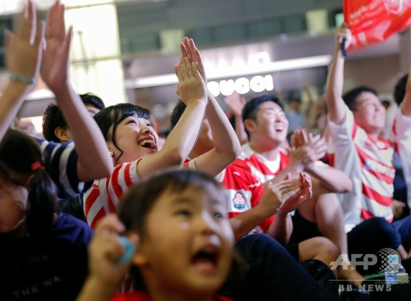 また、台風が発生するのは「この時期の日本では通常のことであり、ほとんどのケースは日常生活に最小限の影響があるのみ」と強調しつつ、安全を期して熊本市と福岡市のファンゾーンが一時的に閉鎖されたと明らかにした。(c)AFP