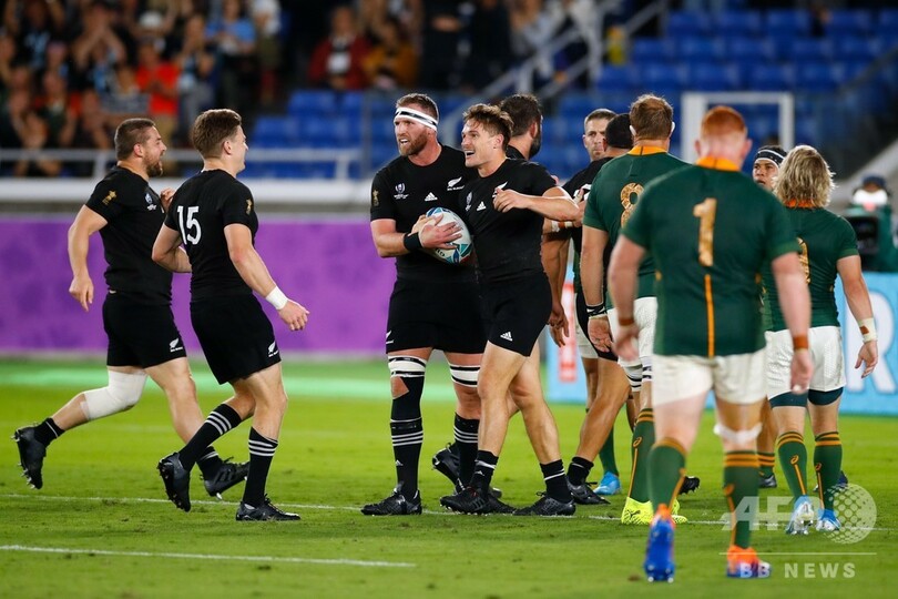 【9月21日 AFP】ラグビーW杯日本大会(Rugby World Cup 2019)は21日、プールBの試合が行われ、連覇を狙うニュージーランドが接戦の末、23-13で南アフリカを下した。優勝候補同士がぶつかる注目の一戦を制し、本命と呼ばれるのにふさわしい力を示した。