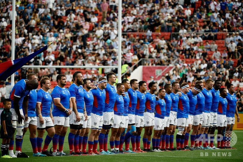 一方、出場国の中では最も低い世界ランキング23位のナミビアも、最後まで気持ちの入ったプレーを見せた。ナミビアのディフェンスコーチは、もし自分たちが金星を飾るようなことがあればファンの前で即興のハカを披露すると約束しており、実際に絶好のスタートを切ったものの、最終的には地力の差が出た。(c)AFP