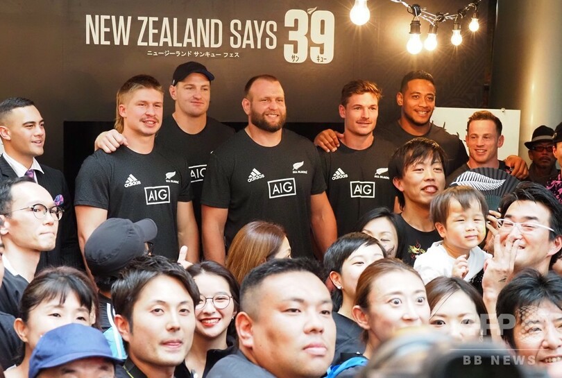 【9月22日 AFP】ラグビーニュージーランド代表の選手が22日、都内で同国政府観光局が主催したイベント「ニュージーランド サンキューフェス(New Zealand Says 39)」に参加し、ファンと交流した。