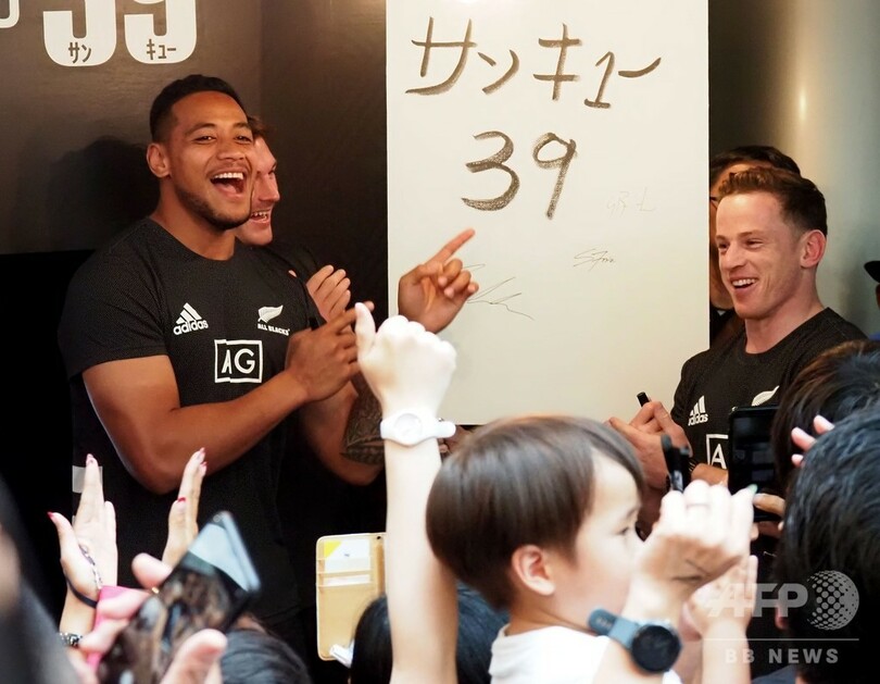 【9月22日 AFP】ラグビーニュージーランド代表の選手が22日、都内で同国政府観光局が主催したイベント「ニュージーランド サンキューフェス(New Zealand Says 39)」に参加し、ファンと交流した。