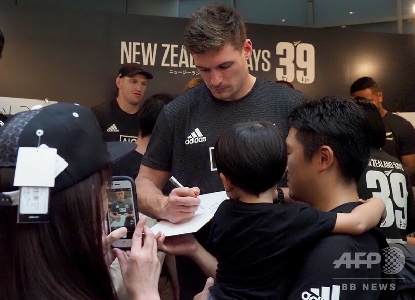 【9月22日 AFP】ラグビーニュージーランド代表の選手が22日、都内で同国政府観光局が主催したイベント「ニュージーランド サンキューフェス(New Zealand Says 39)」に参加し、ファンと交流した。