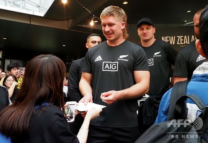 【9月22日 AFP】ラグビーニュージーランド代表の選手が22日、都内で同国政府観光局が主催したイベント「ニュージーランド サンキューフェス(New Zealand Says 39)」に参加し、ファンと交流した。