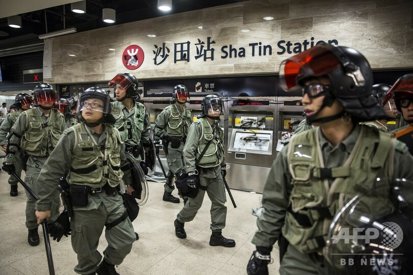 香港の民主派デモ、ショッピングモール前で機動隊と衝突