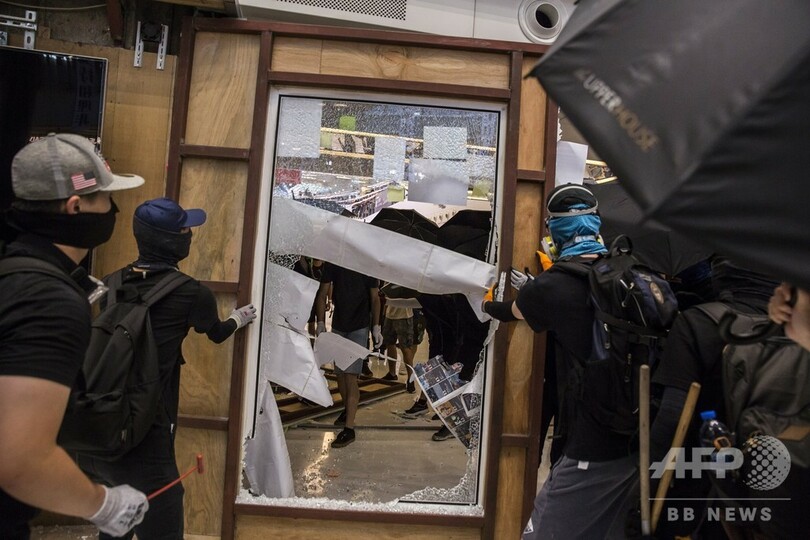 【9月23日 AFP】民主派の週末デモが連続16週目を迎えた香港で22日、デモ隊と機動隊がショッピングモールの前で衝突した。一部のデモ参加者が近くの地下鉄駅で破壊行為を働き、中国の国旗を汚損するなどしたが、空港を混乱させる計画は実現しなかった。