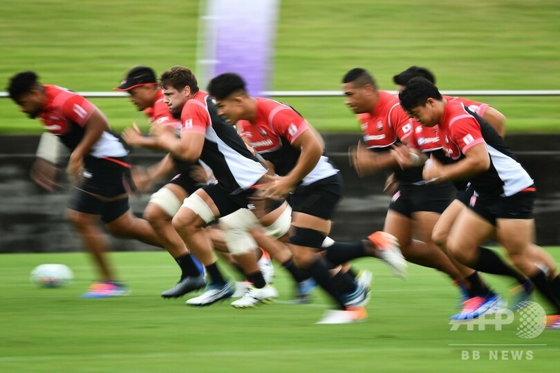 【9月23日 AFP】ラグビー日本代表は23日、W杯日本大会(Rugby World Cup 2019)のアイルランド戦を5日後に控え、静岡県浜松市にある遠州灘海浜公園(Enshunada Coastal Park)の球技場でトレーニングを行った。(c)AFP