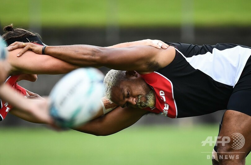 【9月23日 AFP】ラグビー日本代表は23日、W杯日本大会(Rugby World Cup 2019)のアイルランド戦を5日後に控え、静岡県浜松市にある遠州灘海浜公園(Enshunada Coastal Park)の球技場でトレーニングを行った。(c)AFP
