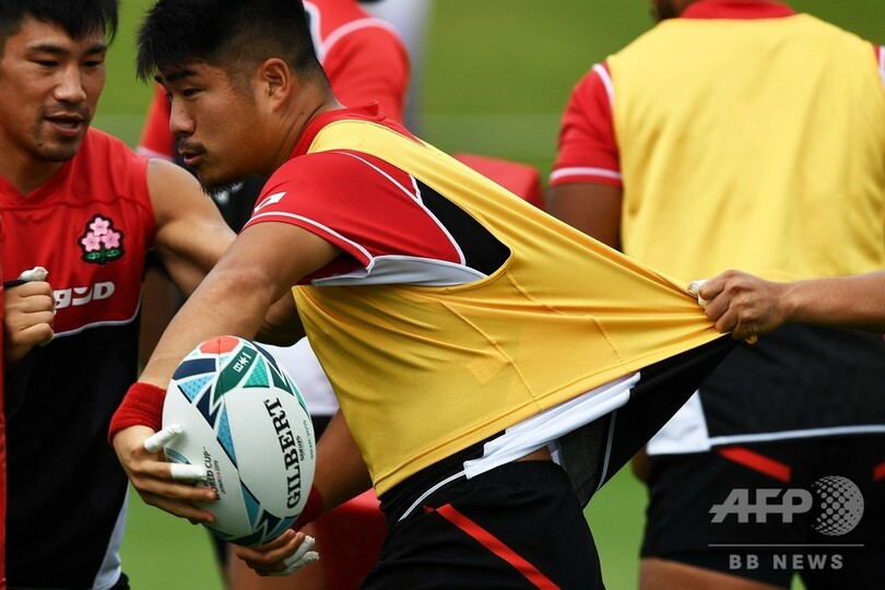 【9月23日 AFP】ラグビー日本代表は23日、W杯日本大会(Rugby World Cup 2019)のアイルランド戦を5日後に控え、静岡県浜松市にある遠州灘海浜公園(Enshunada Coastal Park)の球技場でトレーニングを行った。(c)AFP