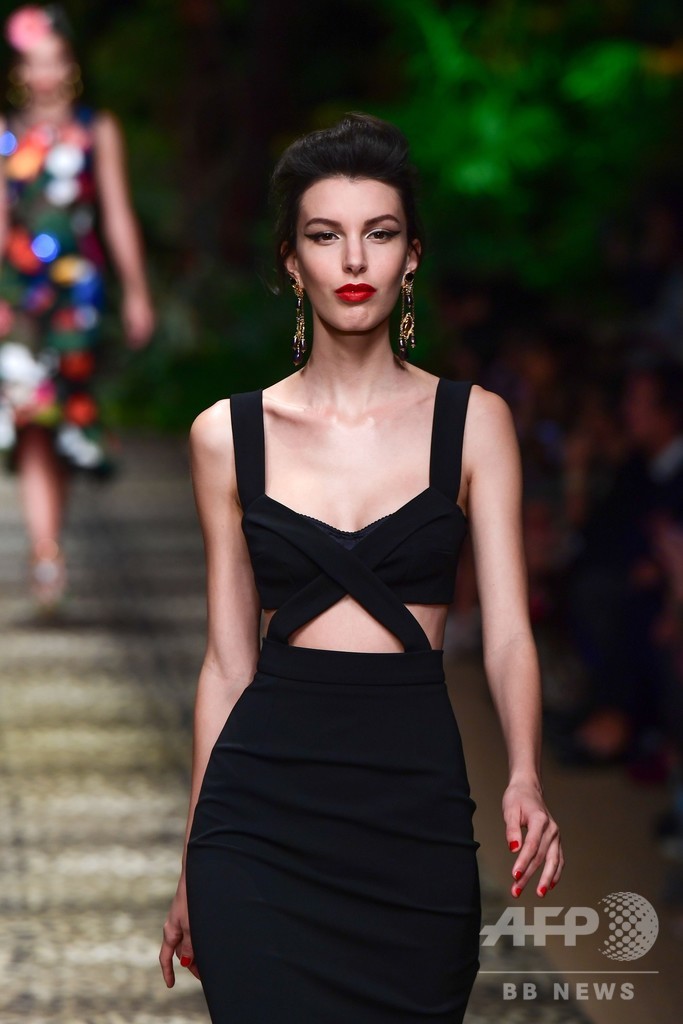 22日には、ステファノ・ガッバーナ(Stefano Gabbana)とドメニコ・ドルチェ(Domenico Dolce)が手がける「ドルチェ&ガッバーナ(Dolce & Gabbana)」が新作を発表した。(c)AFP