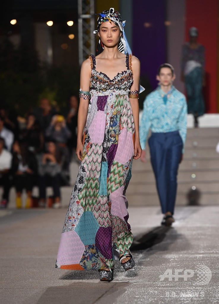 21日には、アンジェラ・ミッソーニ(Angela Missoni)が手がける「ミッソーニ(MISSONI)」が新作を発表した。(c)AFP