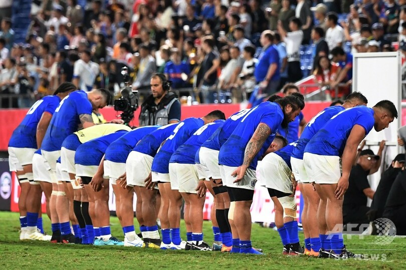 【9月25日 AFP】ラグビーW杯日本大会(Rugby World Cup 2019)は24日、プールAの試合が行われ、サモアが34-9でロシアに勝利。WTBエド・フィドウ(Ed Fidow)の連続トライなどで後半に得点を重ね、イエローカード3枚が出た肉弾戦を制した。