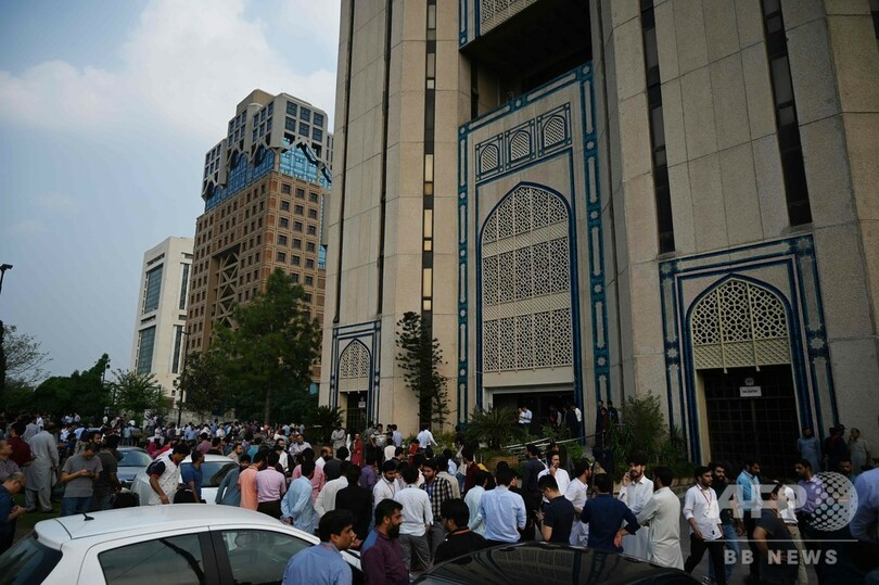 パキスタン各地の都市では、地震により人々が屋外に避難。震源地周辺では道路にできた亀裂に自動車が転落し、揺れで逆さまになった自動車もあった。