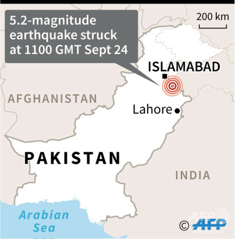 【9月25日 AFP】パキスタン北東部で24日、震源の浅い地震があり、警察幹部によると少なくとも19人が死亡、300人以上が負傷した。地震で道路には自動車の大きさほどの亀裂ができ、インフラに大きな被害が出ている。