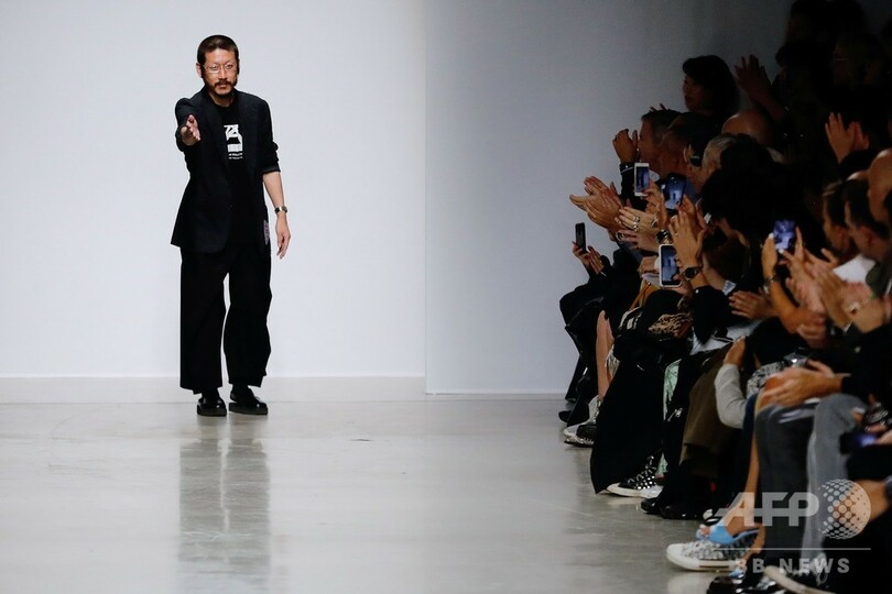 24日には、森永邦彦(Kunihiko Morinaga)が手がける「アンリアレイジ(ANREALAGE)」が新作を発表した。(c)AFP