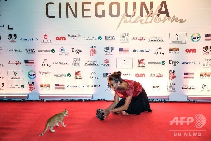 【9月25日 AFP】エジプトのリゾート地エルグーナ(El Gouna)で開催中のエルグーナ映画祭(El Gouna Film Festival)で23日、レッドカーペットに猫が登場する一幕があった。カーペットを「シェア」したエジプト出身の女優ブシュラ・ローザ(Bushra Roza)は床に座り込み、バッグで猫をじゃらそうとした。(c)AFP