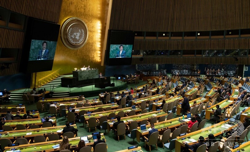 ニュース 政治・経済 安倍首相、国連総会で一般討論演説 2019年9月25日 14:23 発信地:国連本部/米国 [ 米国 北米 日本 アジア・オセアニア ] このニュースをシェア ‹ › ❮ 3/6 ❯ 米ニューヨークの国連本部で開かれた国連総会で一般討論演説に臨む安倍晋三首相(2019年9月24日撮影)。(c)Don Emmert / AFP 画像作成中 ! 【9月25日 AFP】安倍晋三(Shinzo Abe)首相は24日、米ニューヨークで開かれた国連総会(UN General Assembly)で一般討論演説に臨んだ。(c)AFP 政治・経済 一覧へ> メディア・報道関係・法人の方向け 写真・動画 購入のお問合せ>