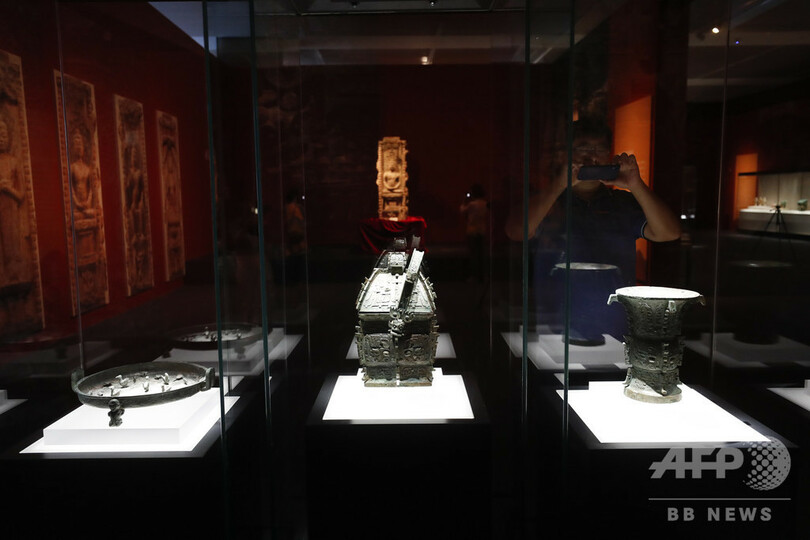 国家文物局が、建国以来70年間で300回を超す活動で回収した約15万点の文化財の中から、代表的な25件の回収事例を慎重に選んだ。全国12の省・市、18の文化博物組織が管理する約600点の文化財を選び抜いて、一括展示した中国初の「流失文化財回収事業全貌展示会」である。(c)CNS/JCM/AFPBB News