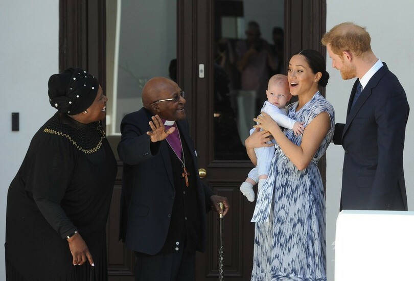 英王子夫妻、南アの元大主教と面会 アーチーちゃんも「初公務」