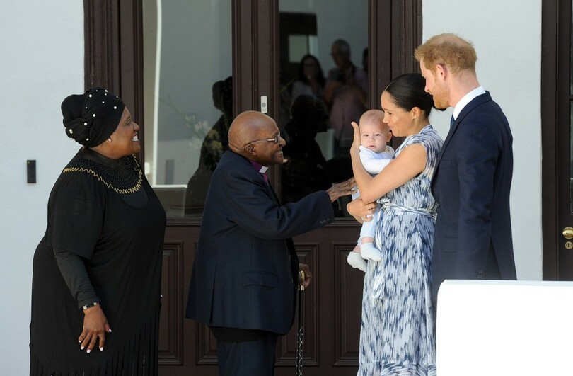 英王子夫妻、南アの元大主教と面会 アーチーちゃんも「初公務」