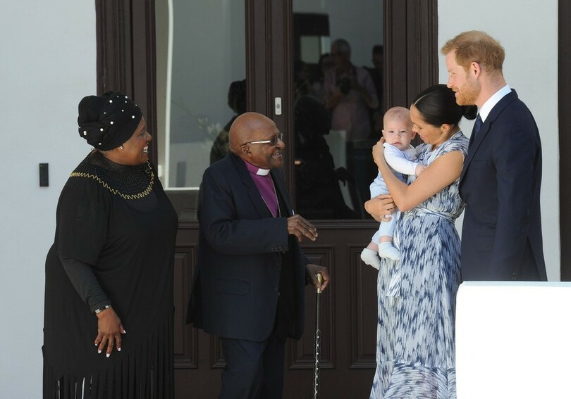 英王子夫妻、南アの元大主教と面会 アーチーちゃんも「初公務」