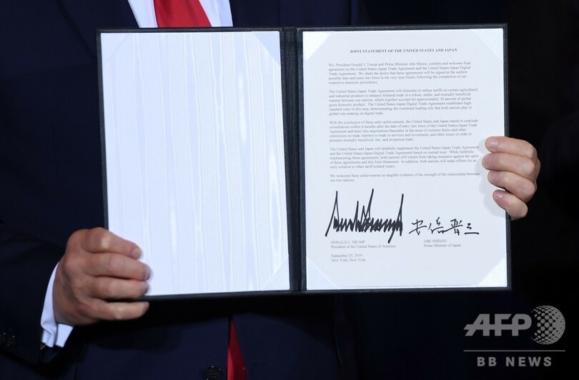 【9月26日 AFP】ドナルド・トランプ(Donald Trump)米大統領は25日、日米両国が包括的な貿易協定の締約に向けて大きく前進したと表明した。