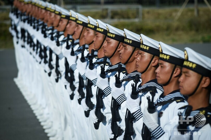 【10月1日 AFP】「国慶節」である中国建国70周年記念の軍事パレードを10月1日に控え、中国・北京郊外の演習場で行進訓練に参加する女性隊員ら。