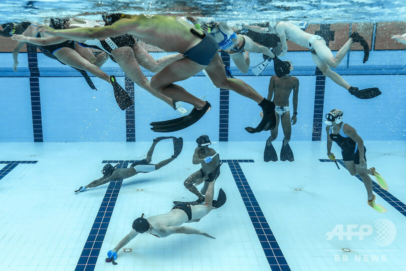 「オクトプッシュ(Octopush)」として知られる水中ホッケーは、1950年代に英国で発祥。ダイバーたちの冬期訓練として始められ、少数だが熱心な愛好者が欧州からアジアにかけて増えていった。数千人ものアスリートが集まる隔年開催のミニ五輪、東南アジア競技大会に、この独特の競技は今回初めて登場する。(c)AFP
