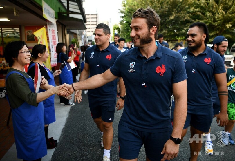 【9月27日 AFP】ラグビーW杯日本大会(Rugby World Cup 2019)に出場しているフランス代表は26日、熊本市内を訪れ、能を舞ったり、地元住民と言葉を交わしたりして文化交流した。また、おはらいを受けた出水神社(Izumi Shrine)では、熊本県の人気キャラクター「くまモン(Kumamon)」からの歓迎を受けた。(c)AFP
