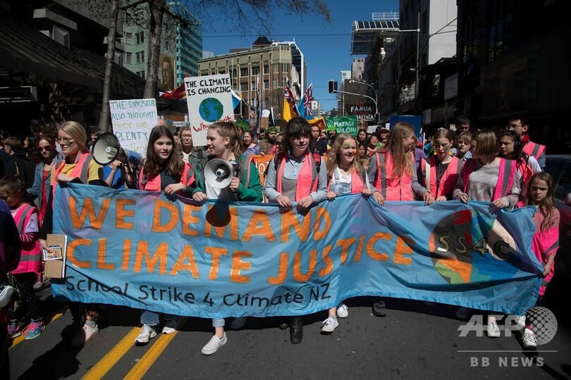 NZ首都に4万人集結、生徒らが気候変動対策訴える「グレタも言っている!」