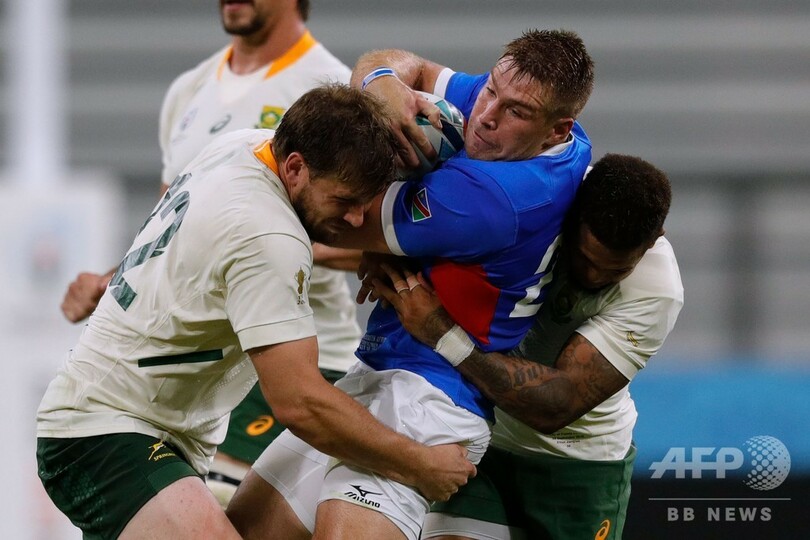 スポーツ ラグビー 写真特集 【写真特集】9月28日のラグビーW杯日本大会 2019年9月29日 9:00 発信地:日本 このニュースをシェア ‹ › ❮ 19/19 ❯ ラグビーW杯日本大会・プールB、南アフリカ対ナミビア。南アフリカのエルトン・ヤンチース(右)とフランス・ステイン(左)のタックルを受けるナミビアのヨハン・デイゼル(中央、2019年9月28日撮影)。(c)Adrian DENNIS / AFP 画像作成中 ! 【9月29日 AFP】28日に行われたラグビーW杯日本大会(Rugby World Cup 2019)の試合などで、AFPのカメラがとらえた写真をまとめた。(c)AFP ラグビー 一覧へ> メディア・報道関係・法人の方向け 写真・動画 購入のお問合せ>