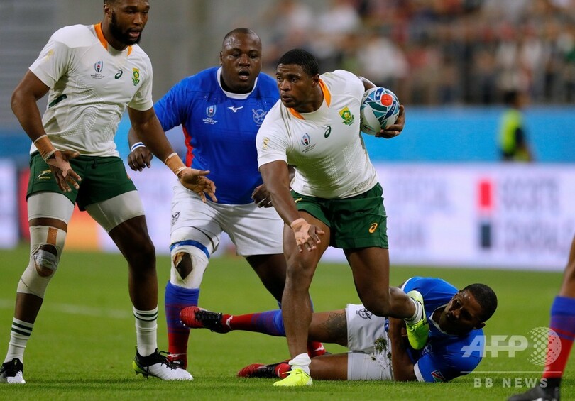 【9月28日 AFP】ラグビーW杯日本大会(Rugby World Cup 2019)は28日、プールBの試合が行われ、南アフリカがナミビアを57-3で下した。2度のW杯優勝を誇る南アフリカは、ナミビアを圧倒して大差の勝利を収め、準々決勝進出に一歩前進した。