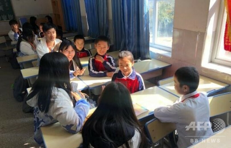地元の学生に昔から伝わる民謡を教わったり、香港の若者も歌を披露したりして、交流を深めた。最後に地元の学生たちにプレゼントを贈り、一緒に記念撮影をした。(c)CNS/JCM/AFPBB News