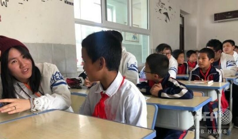 地元の学生に昔から伝わる民謡を教わったり、香港の若者も歌を披露したりして、交流を深めた。最後に地元の学生たちにプレゼントを贈り、一緒に記念撮影をした。(c)CNS/JCM/AFPBB News