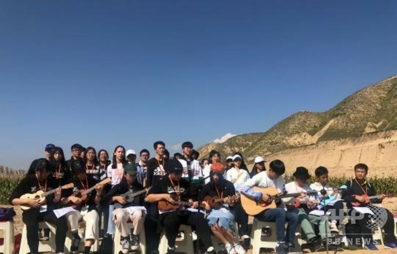 地元の学生に昔から伝わる民謡を教わったり、香港の若者も歌を披露したりして、交流を深めた。最後に地元の学生たちにプレゼントを贈り、一緒に記念撮影をした。(c)CNS/JCM/AFPBB News